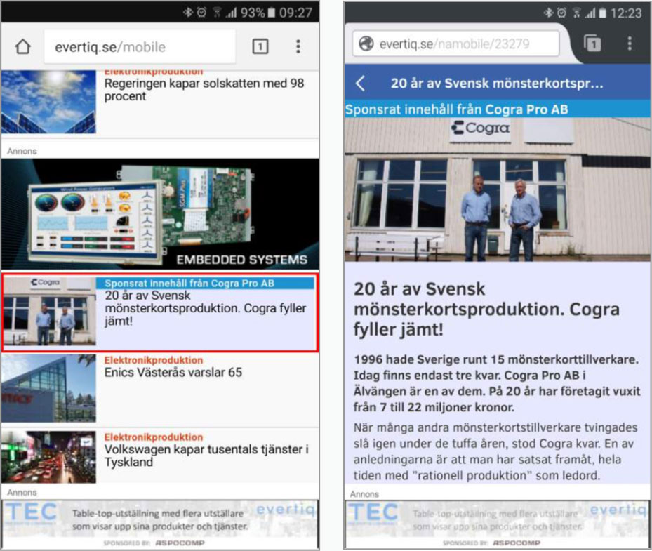 Here are examples of how your ‘sponsored content’ might look on the Evertiq.com homepage across multiple browsers, including PC, Mac and tablet.